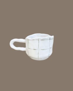 These GRID handshaped mugs stand out with their unique, hand-crafted grid pattern that gives each piece its own structure, contemporary style, and bold character. Every mug is shaped by hand, preserving subtle handmade details that add warmth, naturalness, and authenticity. You can see how these mugs “live” in the ceramic studio on the Meno Materija Instagram page.