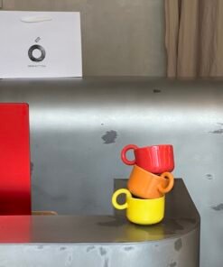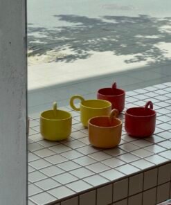 Currently, we offer various color options for the cups, ranging from subtle red to vibrant yellow. These colors bring energy and joy to everyday moments. The color orange brings sunny energy, red creates a spring-like warmth, and yellow adds light and warmth. These colors not only bring life to your kitchen but also blend perfectly with any interior style of your choice.