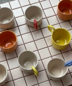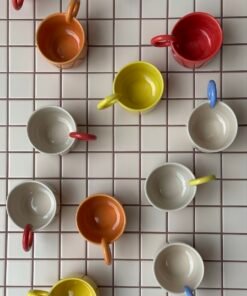 This mug stands out not only for its colorful design but also for its variously designed and colored handles, adding functionality and style to your daily coffee enjoyment.