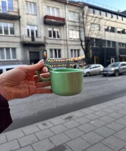 This mug’s design is highly appreciated at Meno Materija for its creative variety of bold colors. It speaks of summer, crushed fruit cocktails, and cold coffee. Its capacity is perfect for those who like to start their mornings with a small cup of coffee.