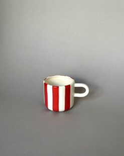 - Red striped mug reminiscent of vintage candy wrappers, will transport you to the sweet world of the past and give your interior a charming retro style.