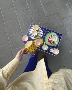These mugs are not just tableware, but also an expressive accent for the interior. The bright red and sky blue colours bring life and character to any space, from the modern city.