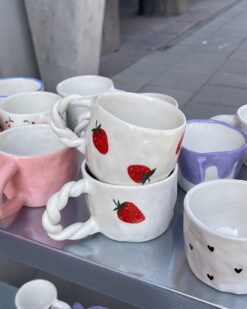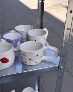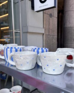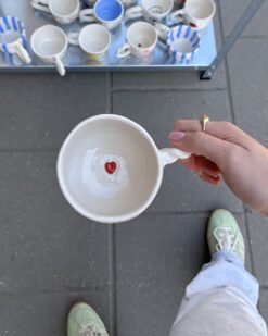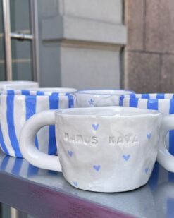 These mugs are born of clay, love and light irony. Their shape is deliberately imperfect – just like all of us. That’s exactly why they are so close: with strawberry prints, flowers, hearts or unexpected blue stripes. None are identical, but all have character.