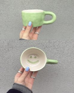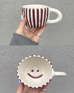 These handmade ceramic SMILE INSIDE mugs were born from a love of colors, shapes, and everyday beauty. Each one is a little mischievous, a little artistic, and completely one of a kind. Whether you start your morning with black coffee or sip tea in the evening – these mugs are created to make your daily routine cozier, slower, and a bit more playful.