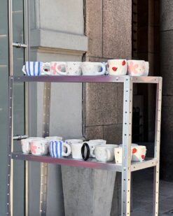 These mugs are born from clay, love, and a touch of irony. Their shape is intentionally imperfect – just like all of us. That’s exactly what makes them so relatable: adorned with little flowers, hearts, or unexpected red stripes. No two are identical, yet all have character.