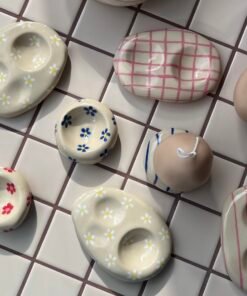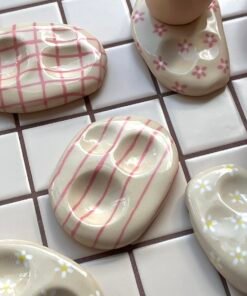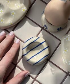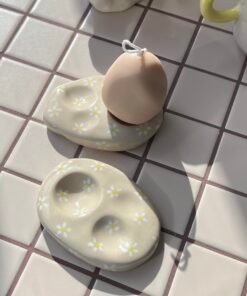 The serving plates are decorated with a variety of playful patterns, from hearts and flowers to stripes and checkered patterns. There is also a creamy minimalist version. This variety allows you to choose the egg holder that best suits your mood and stylistic vision. These dishes are handmade, so each plate is unique and special. High-quality ceramics ensure that the plates are durable and long-lasting, making them the perfect choice for long-term use.