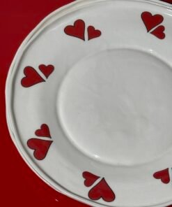 These handmade porcelain plates come in three unique designs that are sure to impress. One plate is decorated with red cherries that bring freshness and summer cheer, the other with strawberries that delight with playfulness and a touch of sweet charm. And the third design features hearts, which add a subtle touch of romance and cosiness. Each design has its own unique charm, so you’ll find one that fits perfectly with your style or your everyday dining moments.