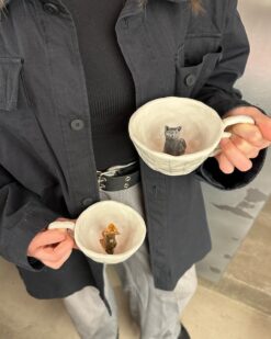 You can see how the cups with different animals are born on Meno Materija Instagram account.