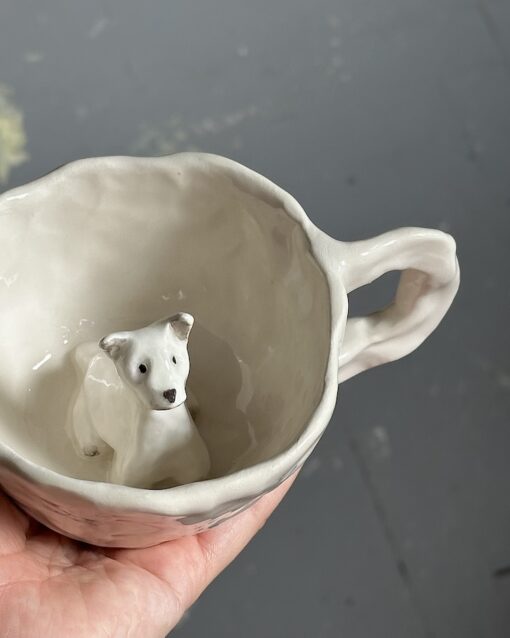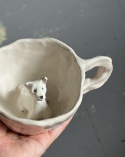Each piece created by Meno Materija reflects our love for ceramics and our desire to create beauty in everyday life. Every time we have new ideas and inspiration, so this time it was a cup with a puppy inside. It is a sincere and personal gift for a loved one. We also offer you an overview of the offer that allows you to design the mug. We will reproduce it and send it to you!