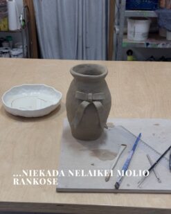 Rezultatas: Po tavo apsilankymo mes gaminį išdžiovinsime, išdegsime, padengsime skaidria glazūra ir išdegsime krosnyje dar kartą.