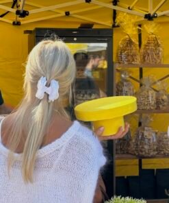 Ši ryškiai geltonos spalvos rankų darbo tortinė – išskirtinis ir vienetinis gaminys, kuris neabejotinai taps jūsų stalo puošmena.
