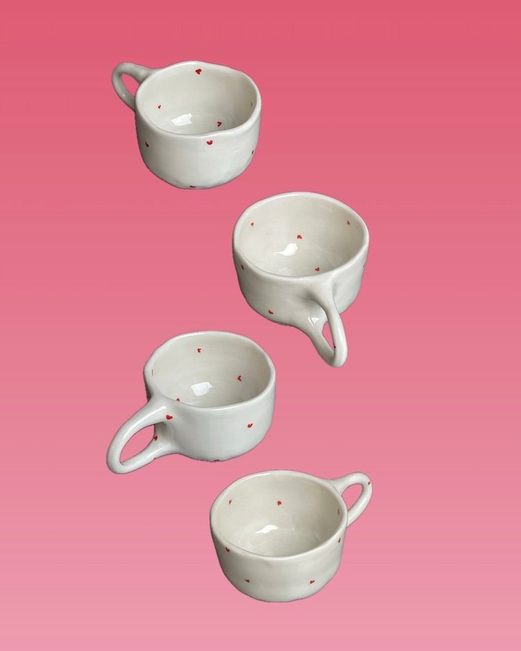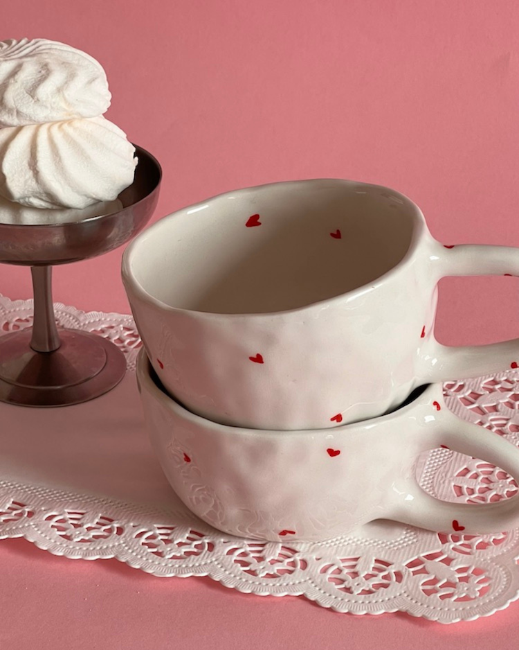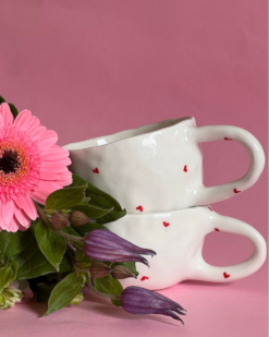LITTLE HEARTS puodelis – tai švelnus, jaukus ir meile alsuojantis rankų darbo kūrinys, sukurtas Valentino dienos nuotaikai bei mažiems kasdieniams džiaugsmams. Baltas puodelis, papuoštas mažomis raudonomis širdelėmis, simbolizuoja meilę, šilumą ir artumą, o subtilus, minimalistinis dizainas kviečia sustoti, pasimėgauti akimirka ir prisiminti tai, kas svarbiausia – ryšį su savimi ir kitais.