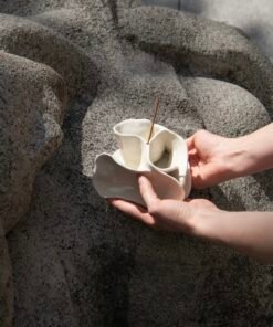 Smilkalų rinkinį papildo keramikinis padėkliukas, kuris ne tik atlieka praktinę funkciją, bet ir tampa estetiška interjero detale. Jis padeda saugiai deginti smilkalus ir harmoningai įsilieja į įvairius interjero stilius – nuo minimalistinio iki bohemiško.