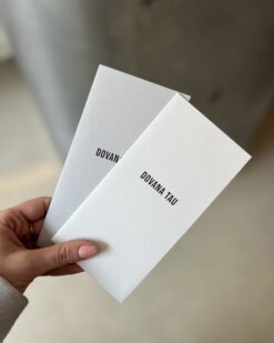 Subtilus, minimalistinio dizaino tekstas ant vokelio perduoda svarbią žinutę ir gerą nuotaiką. Pasirinkite tinkamiausią tekstą iš kelių variantų, atsižvelgdami į jubiliato asmenybę bei šventės pobūdį. Taip pat siūlome baltus vokus su auksine folijavimo spauda, kurie sukuria prabangos ir išskirtinumo jausmą. Juos apžiūrėti galite čia.