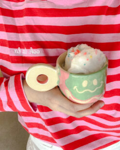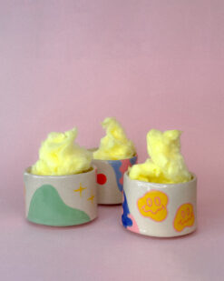Žaismingumu ir netikėtais dekoravimo sprendimais trykštantys dideli puodeliai. Kiekvienas ras sau artimą, nes puodelių spalvų paletė plati, o piešiniai visuomet skirtingi. Dažniausiai ant keramikinio puodelio nugula keista šypsenėlė su spalviniais ornamentais. Tačiau keramikė mėgsta nustebinti gerbėjus nupiešdama įdomių objektų, kurie puodelius paverčia vienetiniais meno kūriniais.