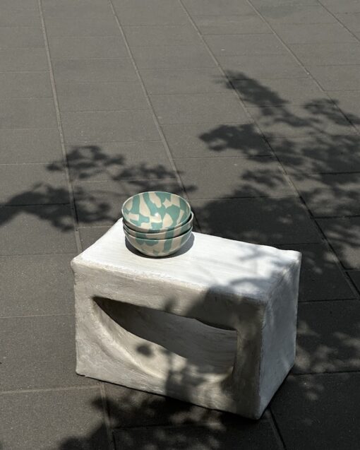 Seniai pamilti ir po Meno Materijos stogu karaliaujantys dubenys yra ypatingi. Visų pirma, marmurinis raštas yra išgaunamas ne glazūravimo ar piešimo metodu. Spalvos milteliai maišomi į molį ir jis kočiojamas, kol išgaunamas abstraktus raštas. Kaip šie salotų dubenys gyvena keramikos parduotuvėlėje galite pamatyti Meno Materijos Instagram paskyroje.