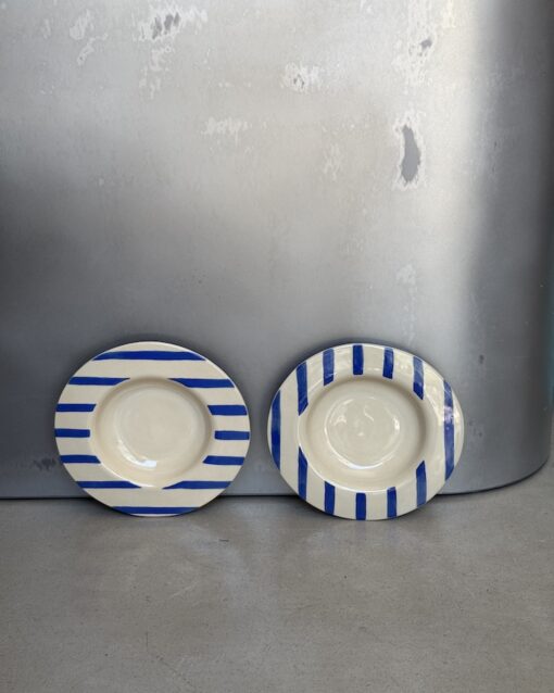 Jaukumas dubenėlyje – rankų darbo keramika su ryškiu mėlynų linijų akcentu.