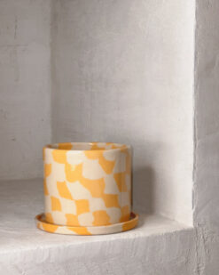 Jūsų augalai puikiai jausis šiuose vazonuose – akmens masės keramika yra patvari, ilgaamžė, kvėpuojanti medžiaga. Vazono dugne esanti skylutė neleis užsistovėti pertekliniam vandeniui, tad augalų šaknys nemirks ir nesupus. Vazonas parduodamas kartu su spalviškai derančia lėkštute.