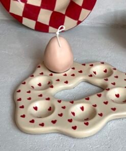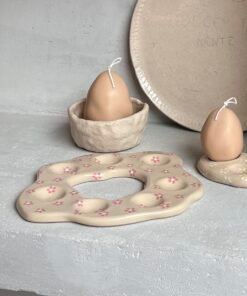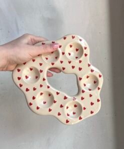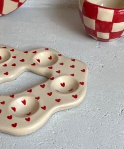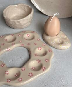 Pagaminta iš aukštos kokybės keramikos, ši lėkštė yra ilgaamžė ir patvari – rankų darbas užtikrina, kad kiekvienas indas yra unikalus ir nepakartojamas. Kiaušiniams skirtos vietos yra patogiai išdėstytos, todėl pusryčiai ar šventiniai patiekalai taps dar malonesni. Tai ne tik praktiškas, bet ir stilingas aksesuaras jūsų virtuvei, kuris neabejotinai trauks akį ir taps stalo puošmena.