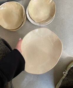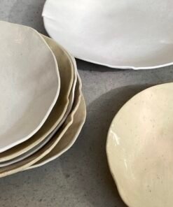 Šios rankų darbo lėkštės – tai švelnios estetikos ir natūralumo dermė. Kiekviena jų – unikali, šiek tiek netaisyklinga, tarsi švelniai banguojanti. Jų forma subtiliai išsilenkusi, o paviršius ne visai lygus – tarsi gamtos sukurta. Tai lėkštės, kurios kviečia lėtumui, pastebėjimui ir jaukiam buvimui prie stalo.