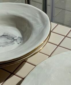 Įkvėptos jūros pasaulio, šios lėkštės kviečia pajusti ramybės, šviesos ir natūralios elegancijos pojūtį kiekviename valgio rituale. Lėkštės pagamintos iš aukštos kokybės porceliano, kuris garsėja savo patvarumu ir rafinuotu spindesiu. Kiekviena detalė apgalvota – nuo lengvai netolygios, organiškos formos iki plonytės auksinės linijos, kuri tarsi vainikuoja kiekvieną lėkštę. Toks derinys suteikia joms ne tik elegancijos, bet ir jaukios, šiuolaikiškos prabangos pojūtį.