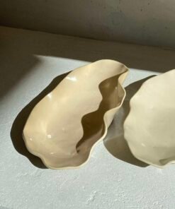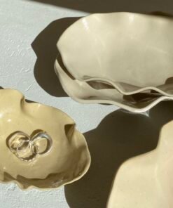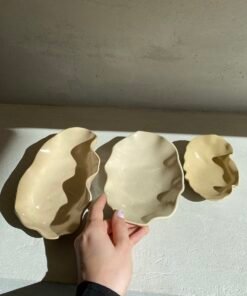Kiekviena lėkštė suformuota rankomis, todėl pasižymi išskirtiniu banguotu siluetu, kuris suteikia organišką, gamtos įkvėptą estetiką. Natūralios spalvos ir subtilus blizgumas pabrėžia keramikos šilumą bei rankų darbo autentiškumą. Pagamintos iš aukštos kokybės molio, glazūruojamos neutraliais, žemės tonais – nuo švelnios kreminės iki sodresnės rusvos spalvos. Dėl šios spalvų paletės jos puikiai dera tiek prie modernaus, tiek prie minimalistinio ar bohemiško stiliaus interjero. Kiekviena lėkštė šiek tiek skiriasi forma ir atspalviu, todėl įsigydami jas gaunate tikrai vienetinį kūrinį.