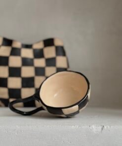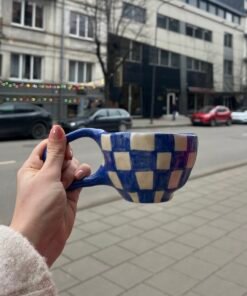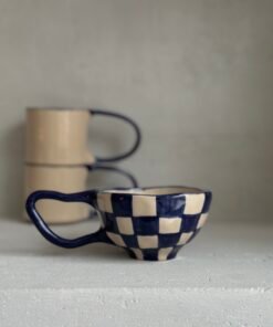 Puodeliai dekoruoti įvairaus dizaino languotais raštais, kurie suteikia jiems išskirtinio žavesio ir žaismingumo. Kiekvienas raštas – unikalus, sukurtas su meile ir dėmesiu detalėms. Vieni primena šachmatų lentą, kiti – subtilius ranka pieštus linijų derinius, kurie suteikia modernumo ir elegancijos. Šis dizainas lengvai derės prie bet kokio interjero – nuo jaukaus kaimiško iki minimalistinio modernaus stiliaus.