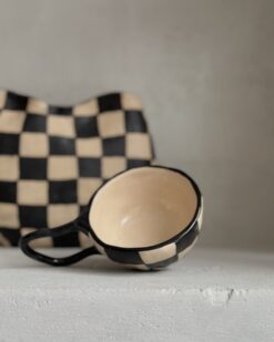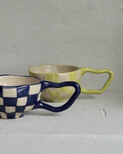 Puodeliai dekoruoti įvairaus dizaino languotais raštais, kurie suteikia jiems išskirtinio žavesio ir žaismingumo. Kiekvienas raštas – unikalus, sukurtas su meile ir dėmesiu detalėms. Vieni primena šachmatų lentą, kiti – subtilius ranka pieštus linijų derinius, kurie suteikia modernumo ir elegancijos. Šis dizainas lengvai derės prie bet kokio interjero – nuo jaukaus kaimiško iki minimalistinio modernaus stiliaus.