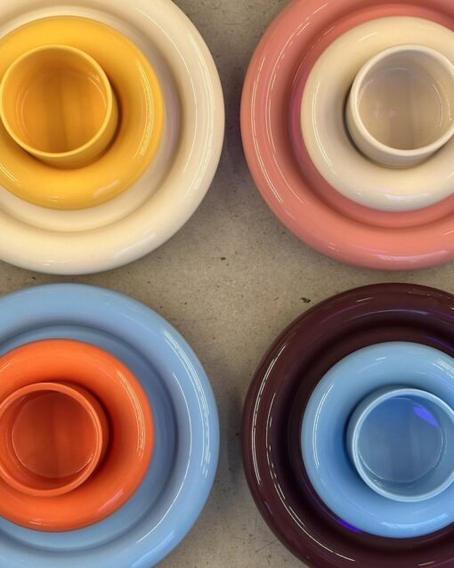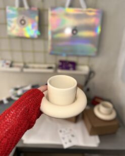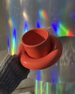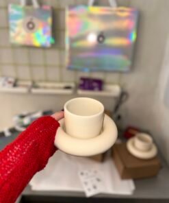 Masyvios, skulptūriškos formos puodelis su lėkštute akimirksniu patraukia dėmesį. Tai ryškus ir išskirtinis dizainas, lengvai atpažįstamas visame pasaulyje, dažnai matomas stilinguose namuose, kūrybinėse erdvėse ir dizaino leidiniuose. Šis komplektas puikiai dera tiek moderniame, tiek eklektiškame interjere ir tampa stipriu vizualiniu akcentu ant stalo ar lentynos.