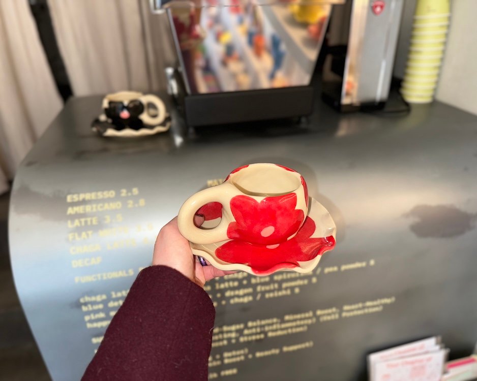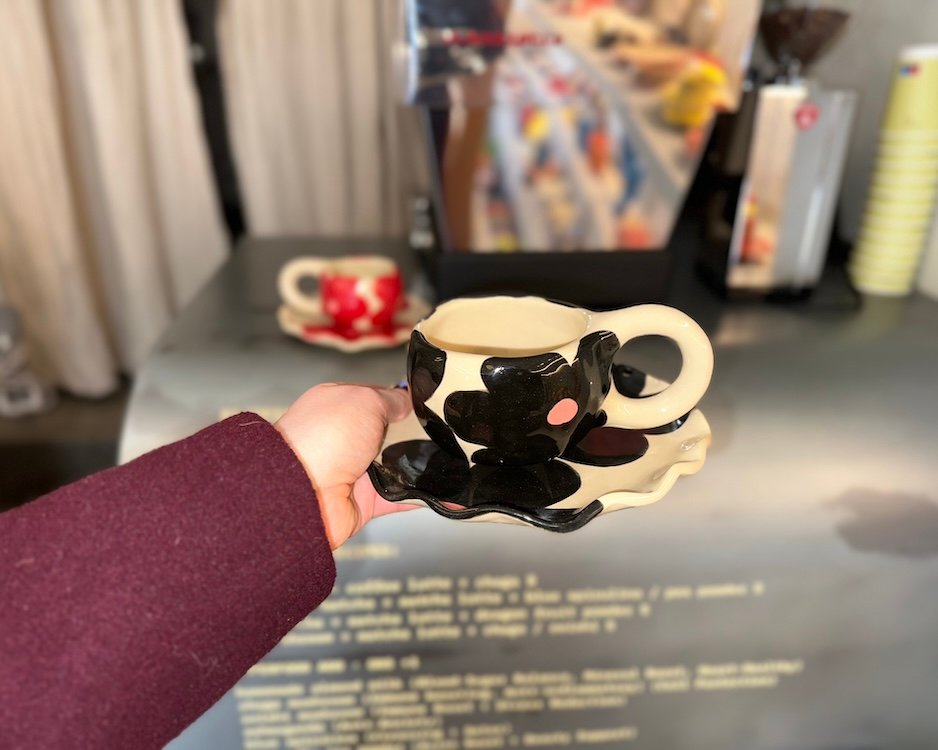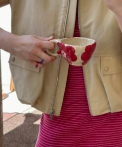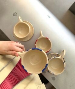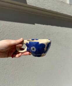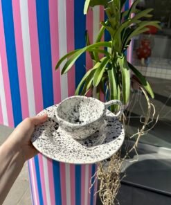Kiekvienas Viktorijos Arlauskės sukurtas kūrinys atspindi jos meilę keramikai ir siekį kurti grožį kasdienybėje. Kaskart autorei gimsta naujos mintys ir įkvėpimas kaip dekoruoti puodelį, tad visi jie skirtingi. Įsigydami šį puodelį su lėkštute, jūs ne tik gausite unikalų meno kūrinį, bet ir prisidėsite prie vietinių menininkų rėmimo bei jų kūrybos skatinimo.