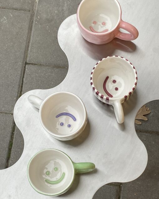 Atrask puodelius, kurie kalba garsiau nei rytinė tyla. Kiekvienas iš jų – unikalus, rankomis formuotas ir dekoruotas spalvingais, spontaniškais potėpiais, tarsi išplėštas iš svajonės ar vaikystės piešinio. Mūsų kolekcijoje susitinka naivus žavesys, drąsios spalvos ir šiuolaikinis požiūris į kasdienybę – visa tai tam, kad tavo rytas būtų ne tik skanus, bet ir estetiškas.