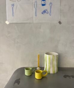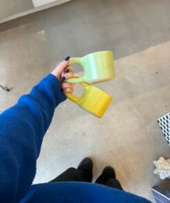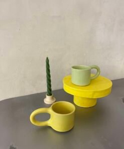 Šie rankų darbo puodeliai su savo žaismingomis spalvomis ir unikaliomis lenktomis rankenėlėmis paverčia kasdienius gėrimus ypatingomis akimirkomis. Gaivios salotinės žalios ir saulėtos geltonos spalvos suteikia energijos ir pozityvumo, o jų išskirtinis dizainas ir patogumas padaro juos idealiu pasirinkimu tiek stilingam, tiek praktiškam naudojimui kasdien!