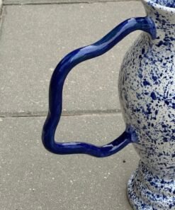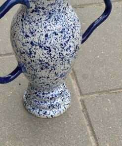 Išskirtinio grožio keramikinė vaza, kurianti ypatingą nuotaiką ir jausmą. Antikinio stiliaus forma, mėlynai taškyta keramika ir ryškios indigo spalvos, nelygių formų rankenos sukuria neįtikėtiną derinį. Norisi kuo ilgiau grožėtis ir tyrinėti šį nuostabų kūrinį. Tiek su pamerktomis gėlėmis, tiek kaip atskiras dekoro elementas, ši vaza tikrai ras vietą Jūsų interjere.