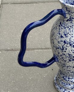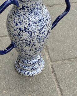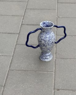 Išskirtinio grožio keramikinė vaza, kurianti ypatingą nuotaiką ir jausmą. Antikinio stiliaus forma, mėlynai taškyta keramika ir ryškios indigo spalvos, nelygių formų rankenos sukuria neįtikėtiną derinį. Norisi kuo ilgiau grožėtis ir tyrinėti šį nuostabų kūrinį. Tiek su pamerktomis gėlėmis, tiek kaip atskiras dekoro elementas, ši vaza tikrai ras vietą Jūsų interjere.