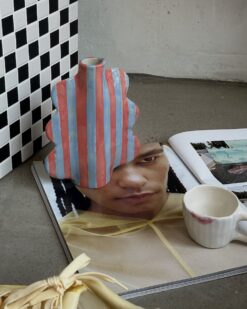 Ši rankų darbo keramikinė, plokščios formos vaza – tikras meno kūrinys, kuris praturtins jūsų namų interjerą savo išskirtiniu dizainu. Jos forma primena lengvą ir grakščią debesį, o vertikalūs mėlyni ir rožiniai dryžiai suteikia dinamiškumo ir gyvumo. Vaza, nors ir moderni, išlaiko paprastumą, kuris leidžia ją lengvai pritaikyti įvairiose erdvėse. Jos plokščia forma idealiai tinka nedidelei gėlių puokštelei ar vienam žiedui pamerkti, o spalvų kontrastas – nuo mėlynos iki raudonos – sukuria subtilią, tačiau išraiškingą vizualinę dinamiką.