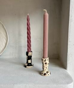 Šioje žvakidžių kolekcijoje rasite įvairių dizainų, kurie atitiks skirtingus skonius ir stilius, todėl kiekvienas galės rasti sau patinkantį variantą. Minimalistinio stiliaus žvakidės puikiai tiks tiems, kurie vertina subtilumą ir paprastumą – jų švarios linijos ir natūralūs atspalviai harmoningai papildys modernų interjerą, suteikdami erdvei ramybės ir elegancijos. Tuo tarpu mėgstantiems išraiškingesnius sprendimus siūlome žvakides su ryškesniais akcentais, tokiomis kaip mielos širdelės ar drąsios leopardo dėmės, kurios ne tik traukia akį, bet ir įneša šiek tiek žaismingumo. Šios žvakidės yra sukurtos tam, kad jos ne tik atliktų savo funkciją, bet ir papuoštų jūsų namus unikaliu dizainu, suteikdamos interjerui asmeniškumo ir šilumos.
